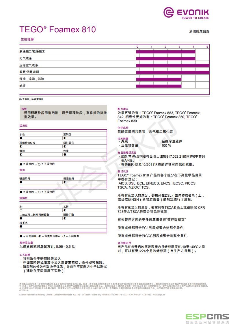 产品型号赢创迪高消泡剂TEGO Foamex 810