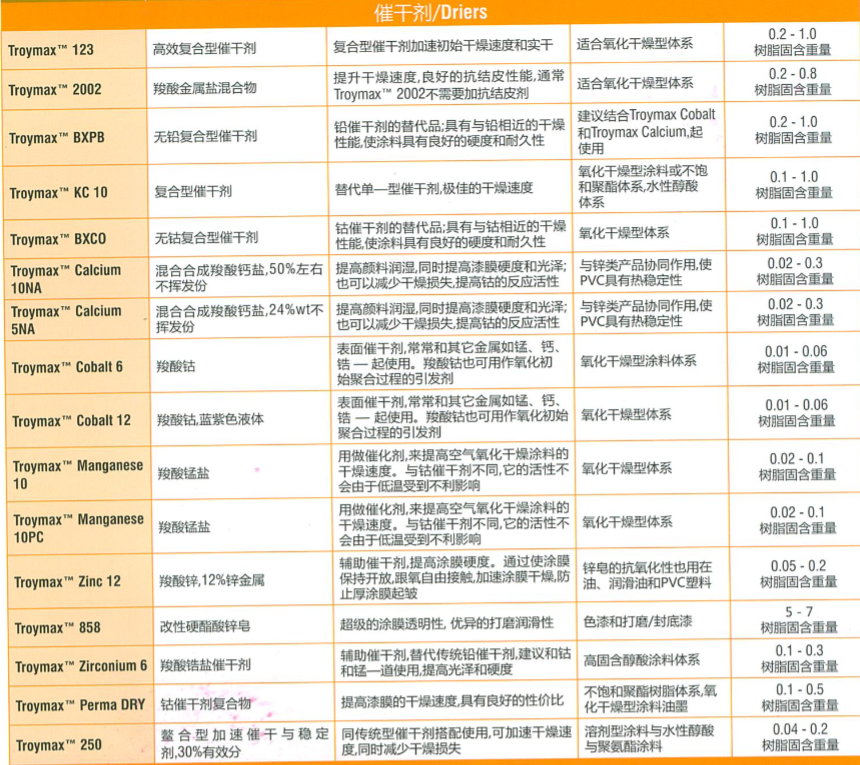产品型号特洛伊催干剂Troymax Perma DRY