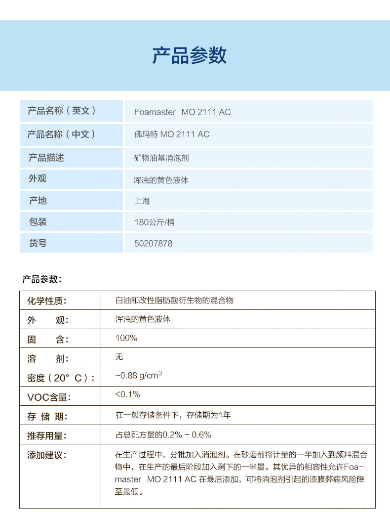 产品型号巴斯夫疏水性消泡剂Foamaster MO 2100 AC