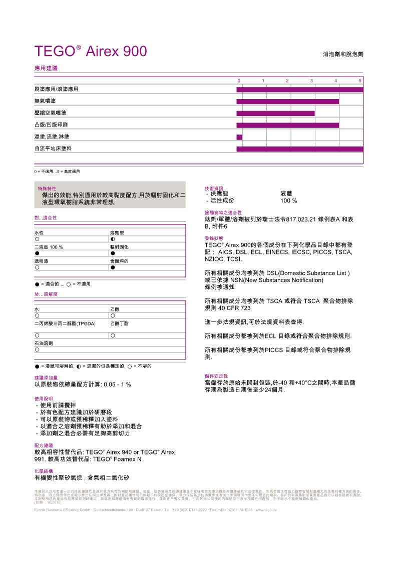 产品型号赢创迪高消泡剂TEGO Airex 900