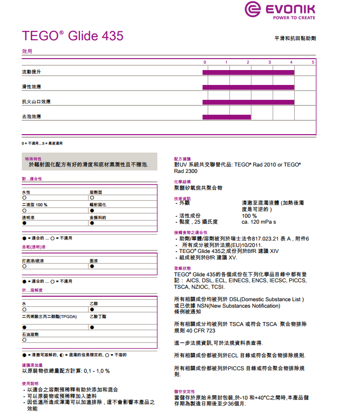 产品型号赢创迪高平滑和流动助剂TEGO Glide 435