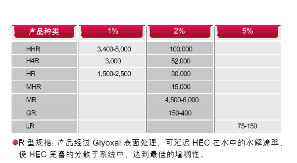 产品规格:NATROSOL 250 R依其粘度高低可区分成下列规格供客户依其需要选择:
