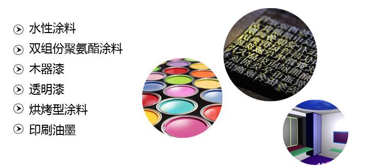 应用:水性涂料、双组份聚氨酯涂料、木器漆、透明漆、烘烤型涂料、印刷油墨等