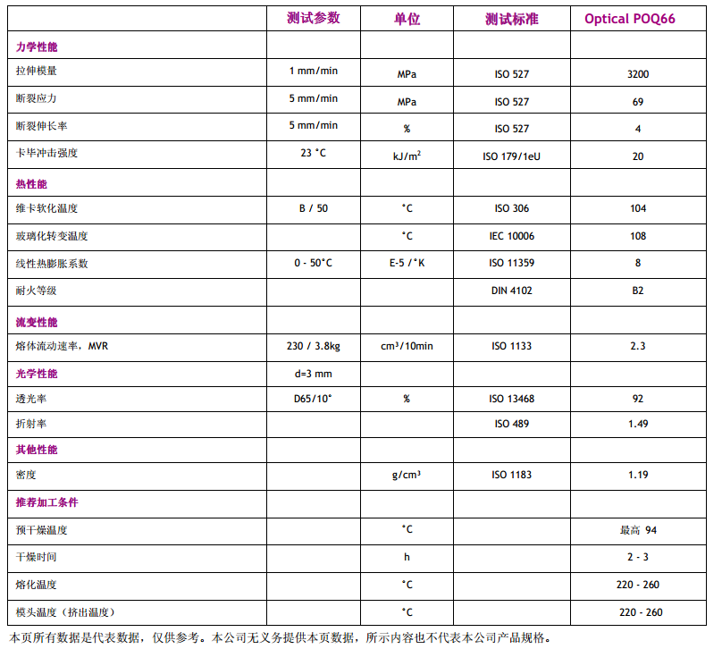 产品型号赢创亚克力PLEXIGLAS Optical POQ66