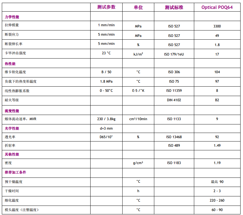 产品型号赢创亚克力PLEXIGLAS Optical POQ64