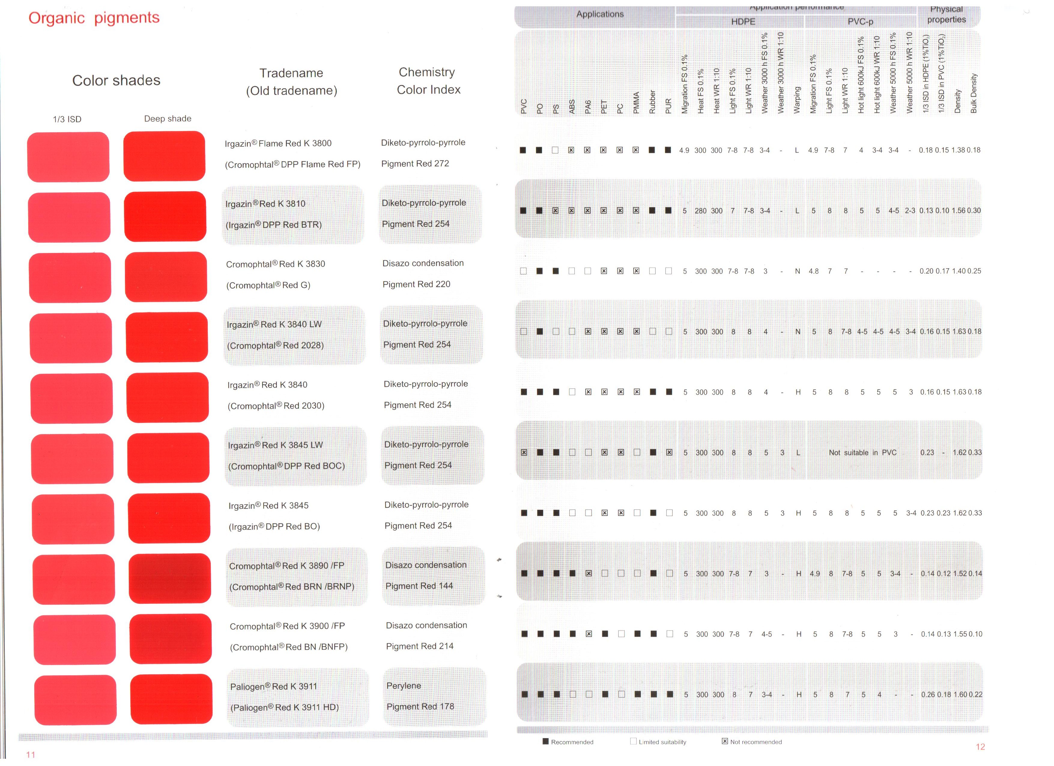 | 红Flame/Cromophtal | K3800/DPP-FP | R-272 | 红Red/Cromophtal | K3840 LW/2028 | R-254 | |||