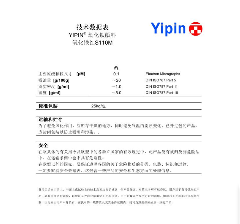产品型号一品无机颜料 氧化铁红RED红 S110M