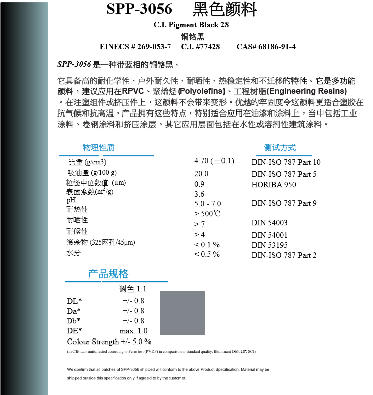产品型号Ferro高效能无机颜料SPP-3056 黑色颜料