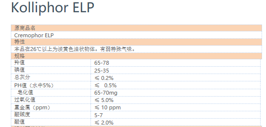 • 产品型号巴斯夫蓖麻油Kolliphor EL,蓖麻油聚烃氧酯(35),聚氧乙烯3...