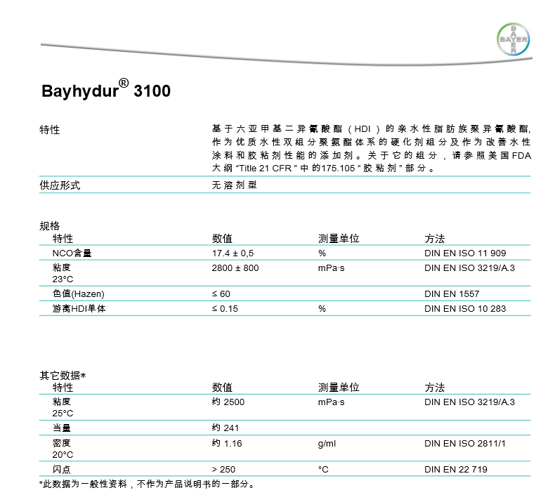 产品型号Bayhydur 3100