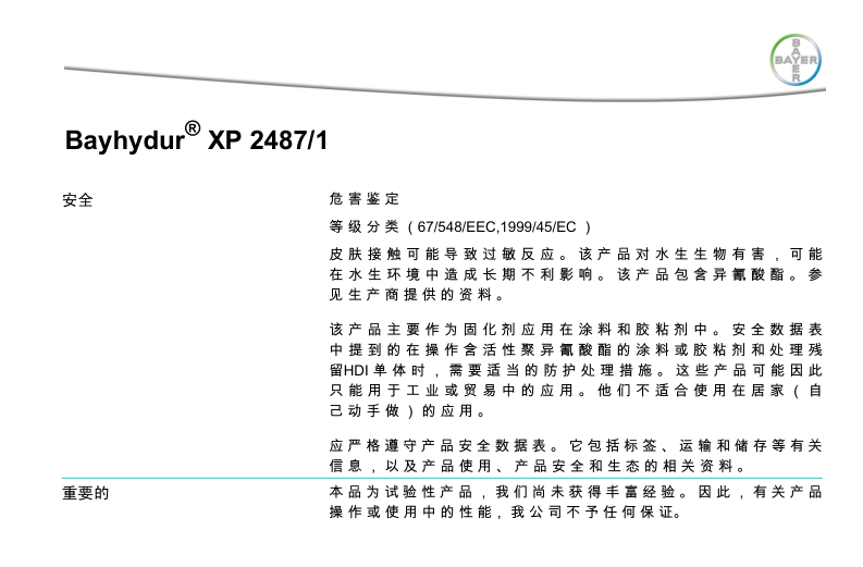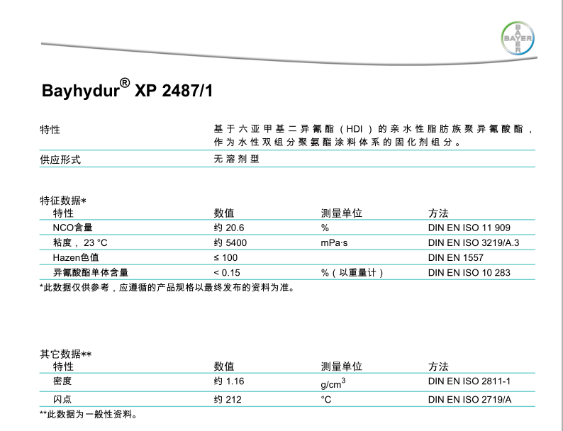 产品型号Bayhydur XP2487/1