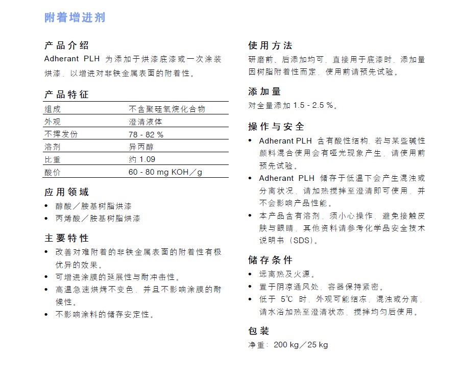 产品特性:改善对难附着的非铁金属表面的附着性有极优异的效果