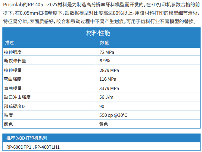 商品名称:光敏树脂RP-405-TZ02Y