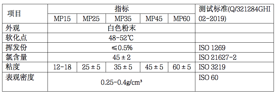 产品型号氯醚树脂MP15 MP25 MP35 MP45 MP60
