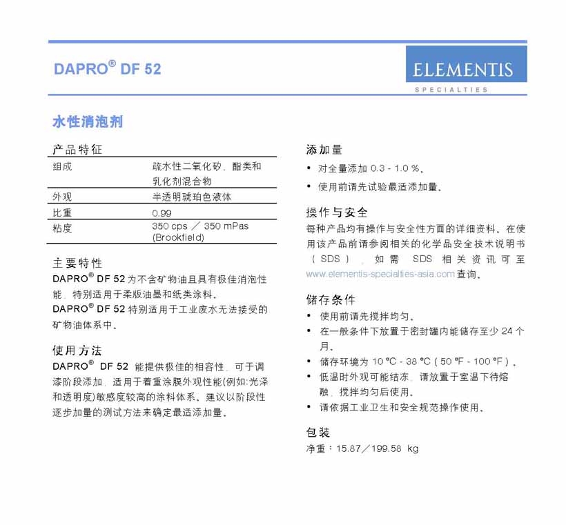 商品名称:海明斯德谦水性助剂DAPRO DF 52