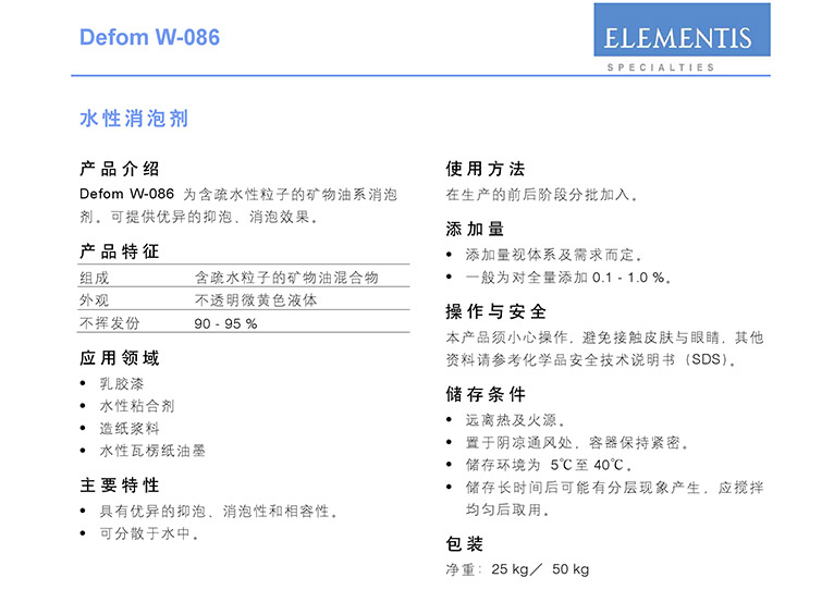 海明斯德谦水性助剂Defom W-086 产品资料下载列表: