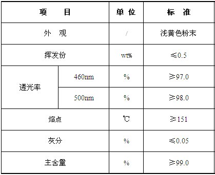 浅黄色粉末,熔点151℃以上,对紫外线的最高吸收峰为353毫微米。本品强烈地吸收300-400毫米的紫外线,化学稳定性好,挥发性小,与聚烯烃的相溶性良好。
