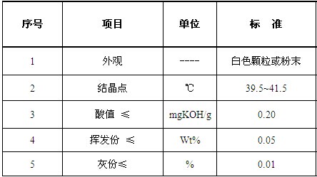 白色片状结晶固体。熔点39.5-41.5℃。比重(20/4℃)0.965。可溶于丙酮、苯、四氯化碳、甲苯、石油醚、醋酸乙酯等有机溶剂中。20℃时的溶解度(克/100克)为:丙酮20,四氯化碳100、石油醚40、甲醇9.1,水<0.1(60-80℃)。