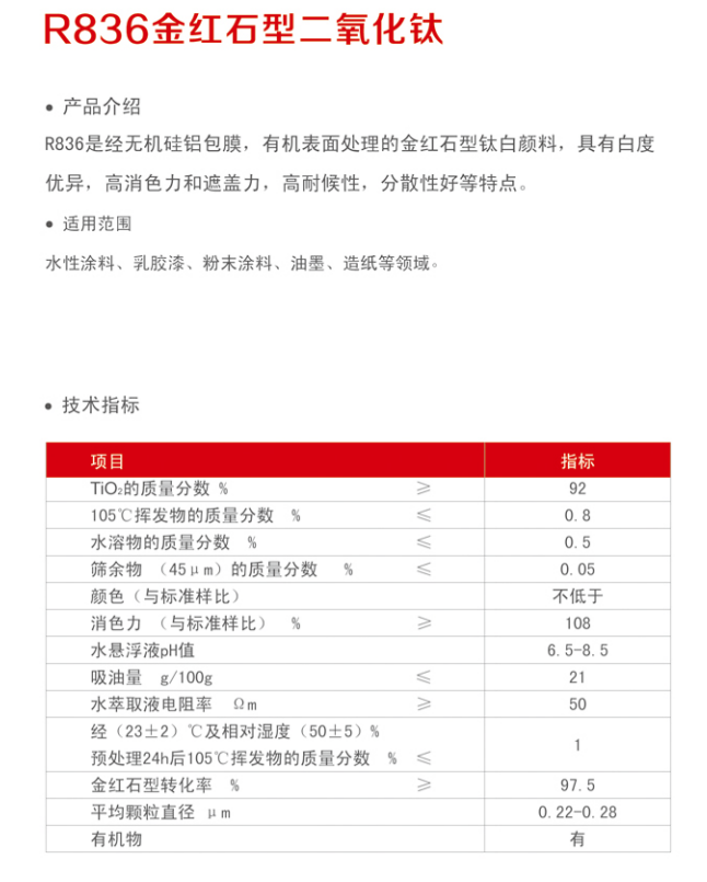 • 产品型号济南裕兴钛白粉 R836