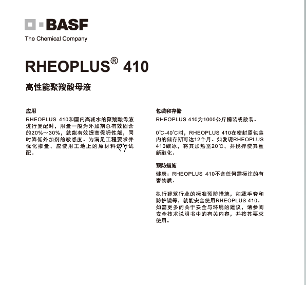 聚羧酸减水剂 RHEOPLUS  410 产品资料下载列表: