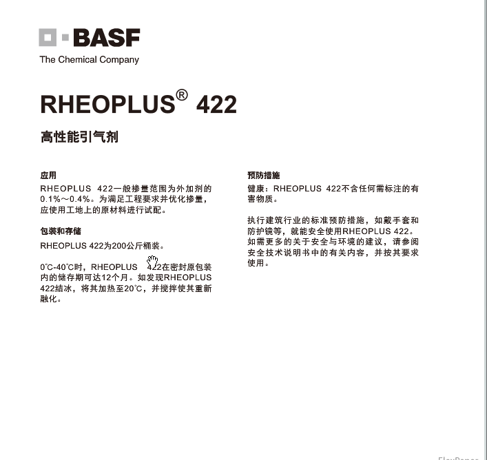 聚羧酸减水剂 RHEOPLUS  422 产品资料下载列表: