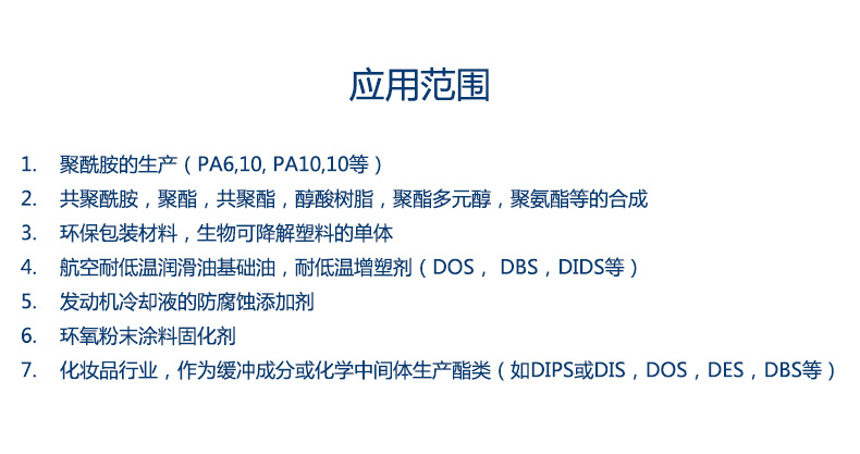 • 产品型号:颗粒99.5%癸二酸