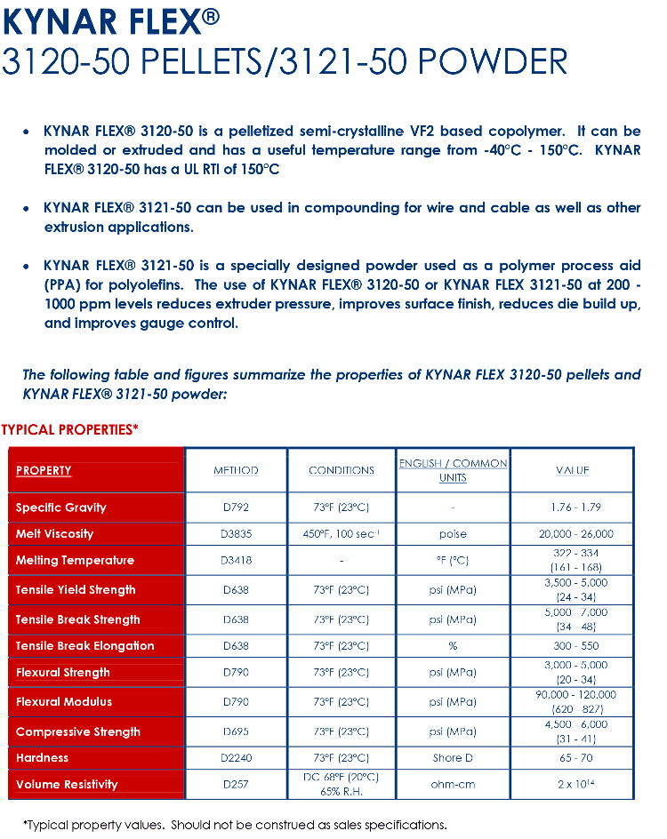 商品名称:阿科玛KYNAR FLEX® 3120-50 PELLETS 3121-50 POWDER