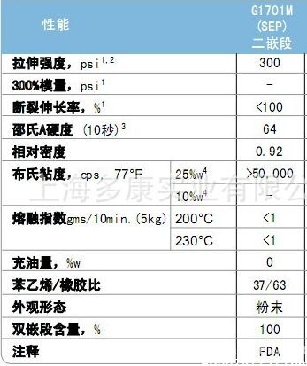 Kraton G1701 、G1702-----苯乙烯-乙烯-丙烯-苯乙烯镶 嵌段共聚物(SEPS)