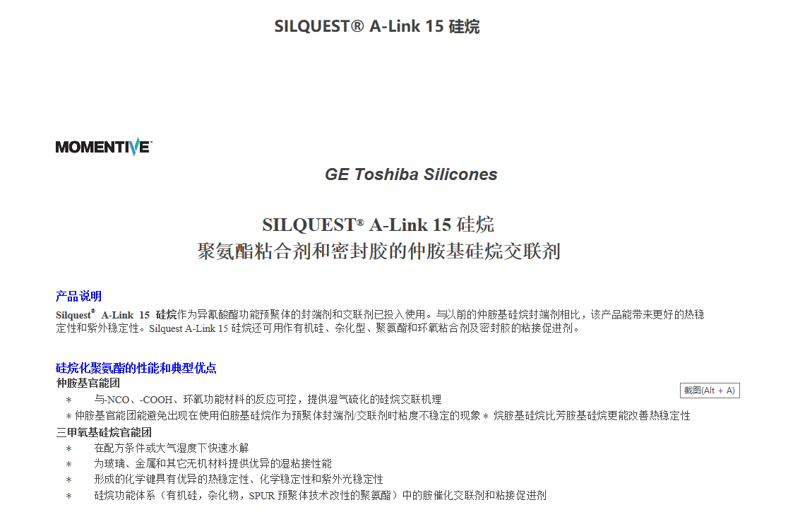 商品名称:美国迈图硅烷偶联剂SILQUEST® A-Link 15 聚氨酯粘合剂和密封...