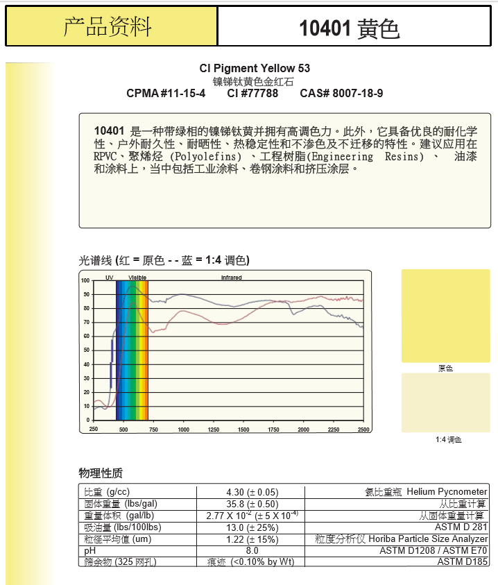 美国福禄公司(Ferro)是 全Q最大的特种材料制造商之一,业务范围涵盖搪瓷瓷釉、陶瓷瓷釉、色素、电子材料、塑料化合物、聚合物添加剂几大领域;福禄无机复合颜料具有高度热稳定性,耐光性,抗化学性及耐候性等特点,特別为户外建筑应用、聚氯乙烯壁板及型材、卷钢等而设,亦可用于对效能有高质素要求的工程塑料、伪装涂料以及其他户外涂料等产品。