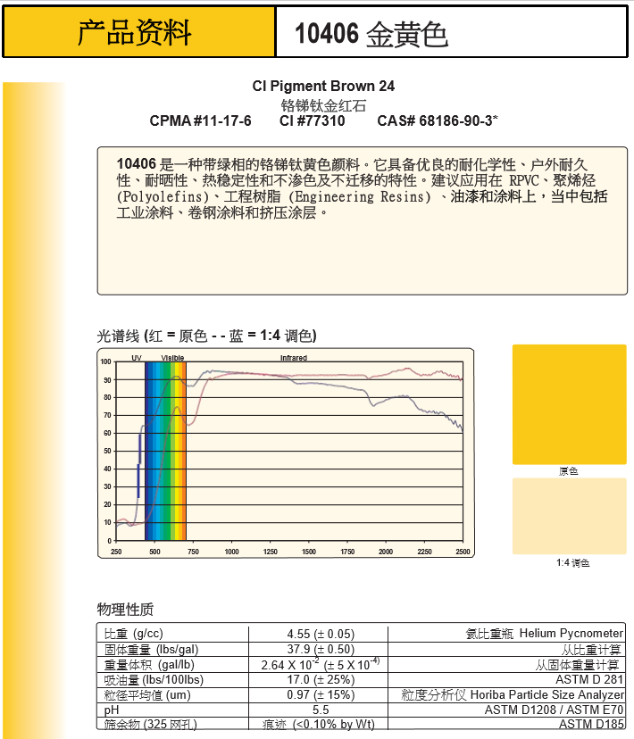 产品型号Ferro高效能无机颜料10406 金黄色