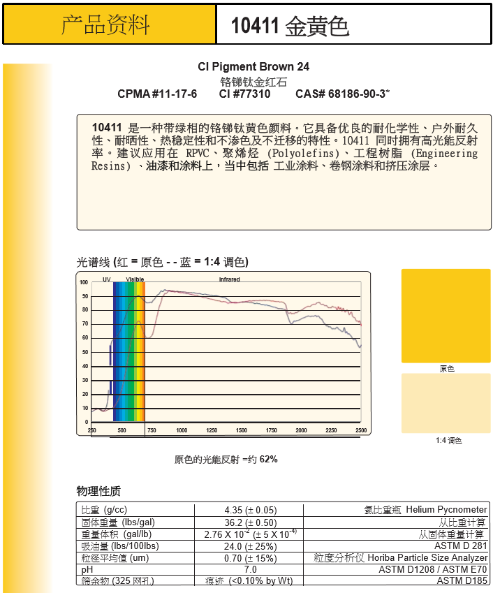 产品型号Ferro高效能无机颜料10411 金黄色