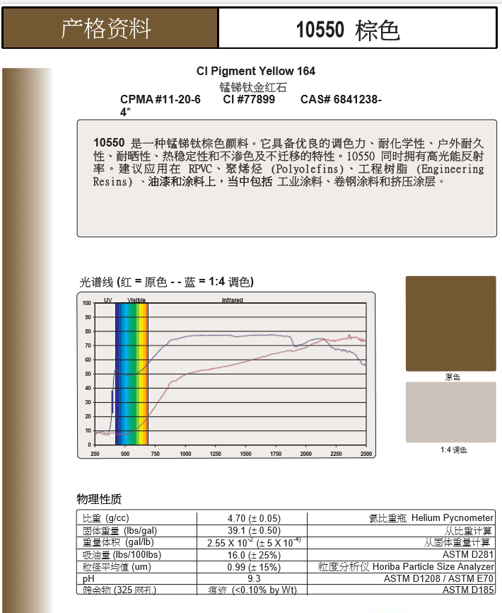产品型号Ferro高效能无机颜料10550 棕色