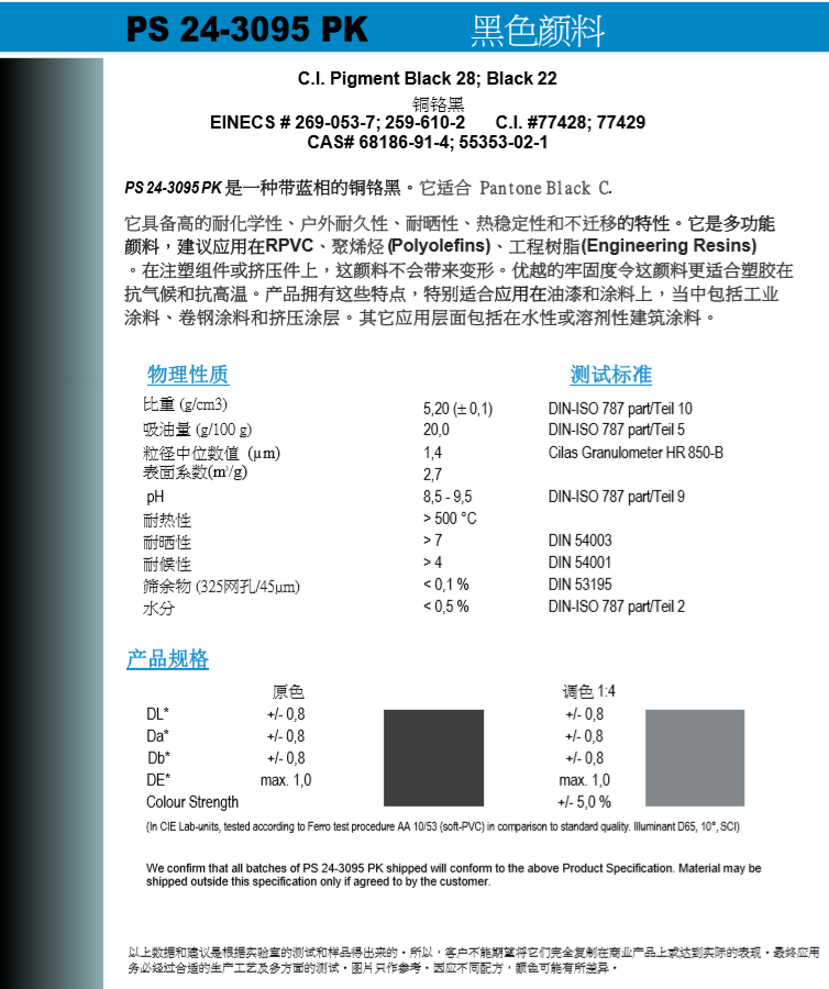 产品型号PS 24-3095 PK 黑色颜料