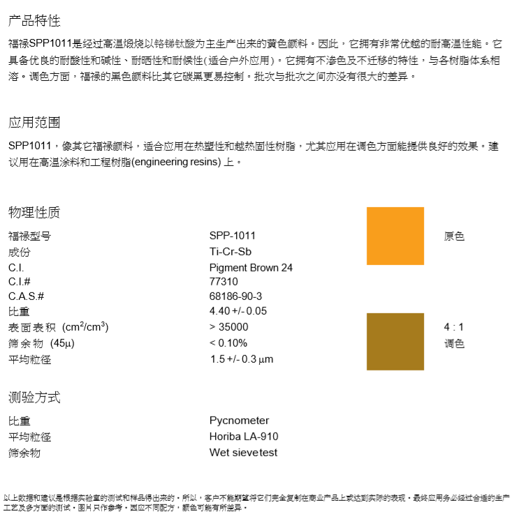 产品型号Ferro高效能无机颜料SPP-1011黄色无机颜料