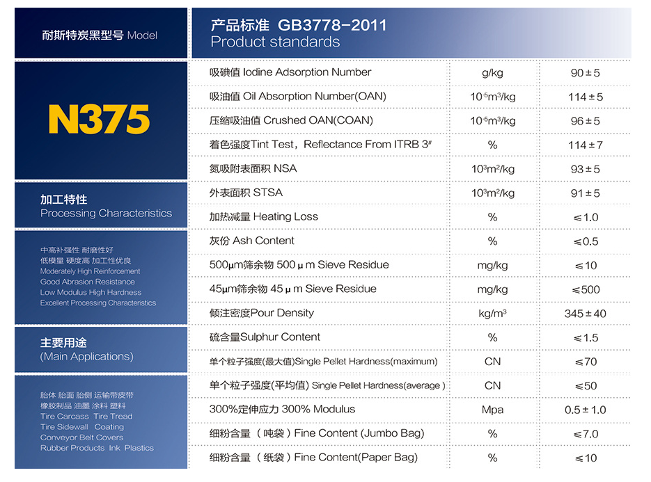 耐斯特炭黑N375 橡胶炭黑 产品资料下载列表: