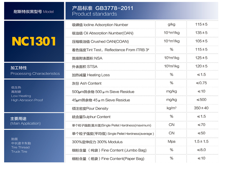 耐斯特炭黑NC1301 橡胶炭黑 产品资料下载列表: