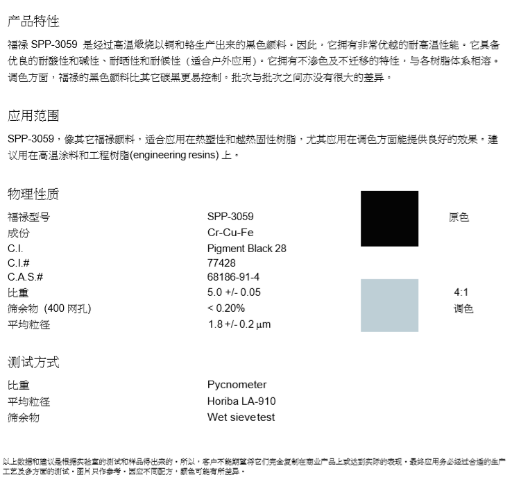 产品型号SPP-3059 黑色无机颜料