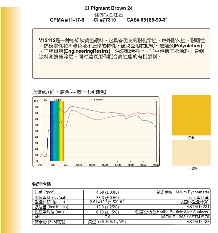 产品型号Ferro高效能无机颜料V-12112 金黄色