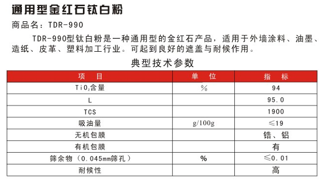 商品名称:攀枝花钛都 通用型金红石钛白粉 TDR-990