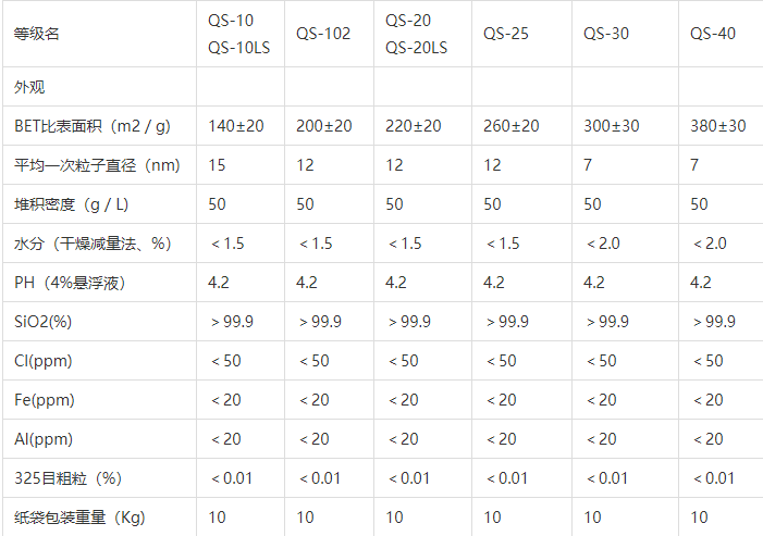 特性:液体系统、粘合剂、聚合物等的流变性与触变性控制;用作防尘降、增稠、防流挂的助剂; HCR-RTV-2K硅酮橡胶的补强;可用来调节自由流动和作为抗结块剂来改善粉末性质。
