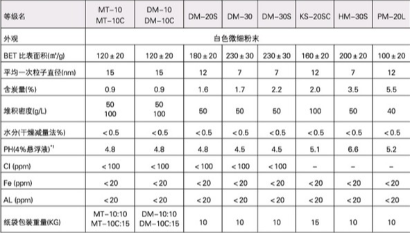 日本德山气相二氧化硅DM-30S参数对比表