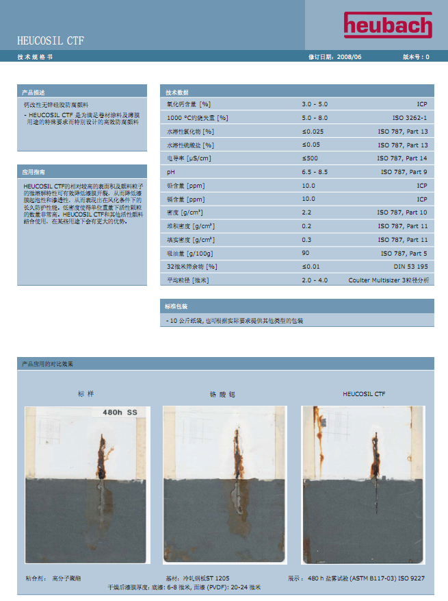 改性正和聚磷酸盐防锈颜料(HEUCOPHOS®)与有机抑制剂(HEUCORIN®)配用时,提供很(zui)佳地长期地腐蚀保护以及与多种树脂体系良好的相容性。