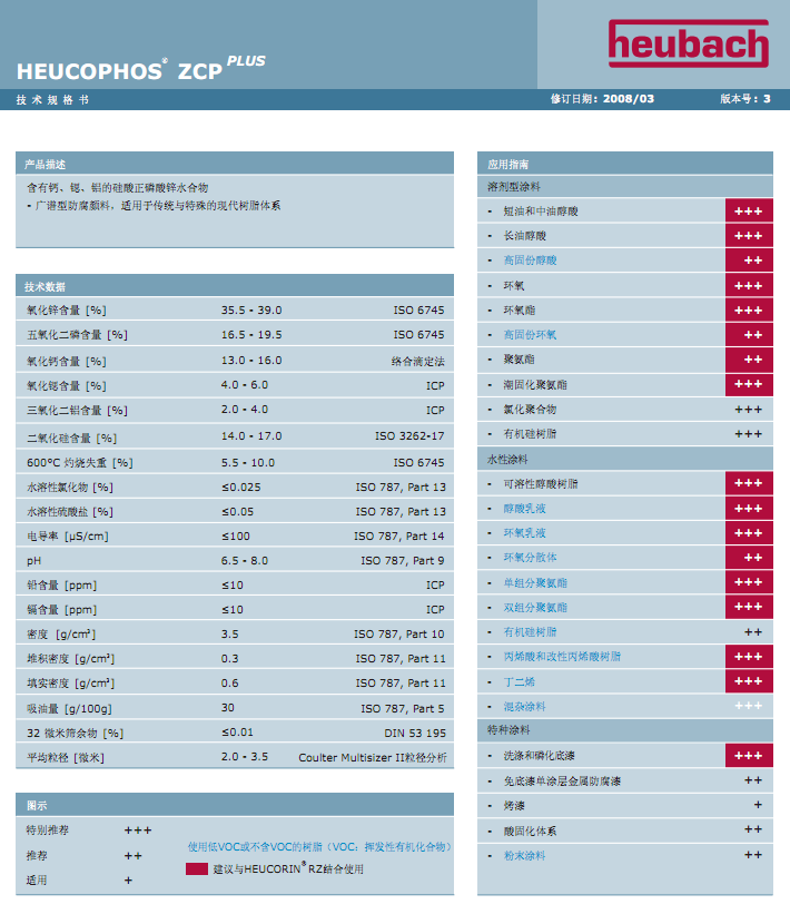 改性正和聚磷酸盐防锈颜料(HEUCOPHOS®)与有机抑制剂(HEUCORIN®)配用时,提供很(zui)佳地长期地腐蚀保护以及与多种树脂体系良好的相容性。