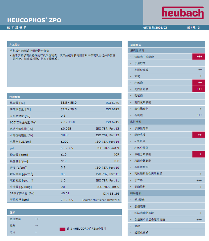 改性正和聚磷酸盐防锈颜料(HEUCOPHOS®)与有机抑制剂(HEUCORIN®)配用时,提供很(zui)佳地长期地腐蚀保护以及与多种树脂体系良好的相容性。