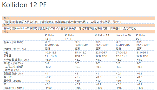 巴斯夫聚维酮Kolidon 12PF 产品资料下载列表: