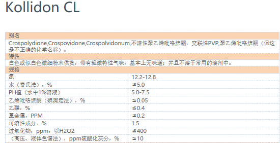 商品名称:巴斯夫聚维酮Kolidon CL