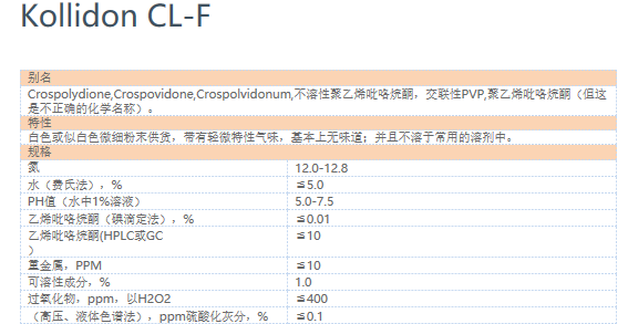 商品名称:巴斯夫聚维酮Kolidon CL-F