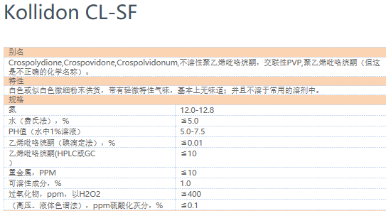 商品名称:巴斯夫聚维酮Kolidon CL-SF
