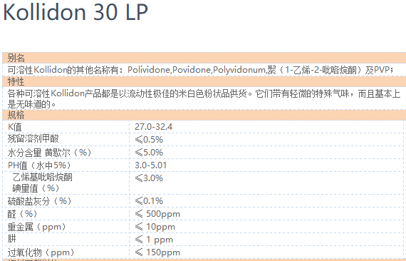 产品型号kollidon 30 lp